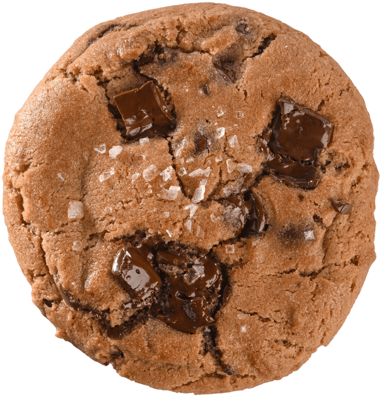 We've taken advantage of this diversity by crafting our own chocolate bars from premium dark and semi-sweet chocolates. By hand-chopping these bars, we ensure each cookie is brimming with chocolate chunks of random sizes, creating a delightful texture and rich flavor profile. A sprinkle of sea salt on top of each cookie not only complements but intensifies the deep chocolate flavors, making for an irresistible treat.